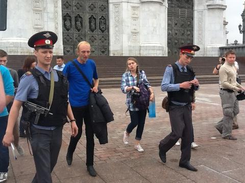 Позже Хореев написал в своем Twitter, что полицейские задержали двоих участников акции: Алексея Михеева и девушку, имя которой пока неизвестно. Позднее был задержан еще один человек (имя не называется), а также активистка Анастасия Зиновкина.