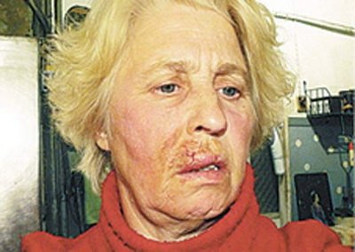 Пострадавшей от рук священнослужителя Валентине Павловой врачи наложили три шва на губу
