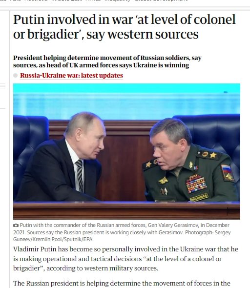 Один из инсайдеров подтвердил, что Путин и Герасимов принимают решения, которые обычно ждут «от полковника или бригадного генерала».