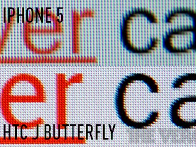 Сверху — экран iPhone 5, снизу — экран HTC J Butterfly