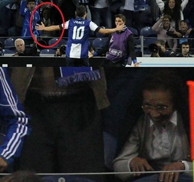 "Призрак из прошлого" попал в объектив фотокамеры на матче отборочного тура Лиги чемпионов между "Порту" и "Пари Сен-Жермен". Как пишет авторитетное спортивное издание 101GreatGoals.com, приведение было заснято на трибунах во время празднования гола, забитого игроком "Порту" Хамесом Родригесом.