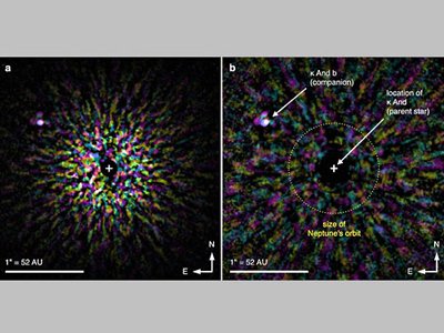 Исследования проводила группа ученых под руководством Джозефа Карсона из мюнхенского Института астрофизики общества Макса Планка. Им удалось сфотографировать огромную газовую планету, которая вращающуюся вокруг звезды Каппа Андромеда, сообщает NEWSru.ua со ссылкой на зарубежные источники.