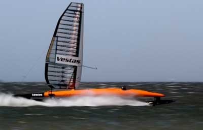 Достижение стало возможным благодаря прочному и очень эффективному судну — Vestas Sailrocket 2. Кажется, что это типичная обтекаемая лодка с аутригером (применявшимся задолго до Колумба). Выбор понятен: обычный однокорпусный парусник генерирует такие сильные волны, что после 50 узлов даже бесконечное наращивание мощности не увеличит скорость: моторы будут разгонять окружающую воду. Второй корпус (или даже аутригер) позволяет резко увеличить длину ватерлинии и тем самым уменьшить непроизводительный расход энергии на генерацию волн при разгоне лодки.