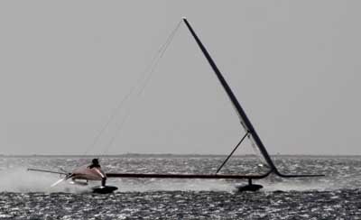 Скорость ветра 16 ноября 2012 года не превышала 25 узлов (46 км/ч, 12,9 м/с). Однако теоретически конструкция этого одноместного парусника позволяет идти с трёхкратной скоростью ветра, так что резервы остались. Пока Ларсена скорее останавливает как раз боязнь слишком уж «обидеть» ветер. Дело в том, что несколько лет назад при средней скорости ветра в 23,4 узла он превысил её в два с лишним раза и… взлетел. А летать под парусом не очень удобно.