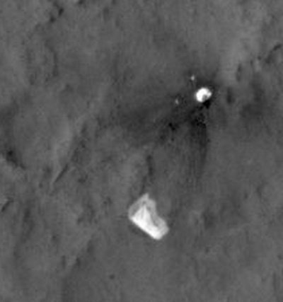 Фотографии, полученные космическим аппаратом NASA Mars Reconnaissance Orbiter, демонстрируют, как парашют, который помог вездеходу НАСА Curiosity совершить приземление на Марс прошлым летом, впоследствии изменил свои очертания на поверхности планеты, сообщает Astro News.