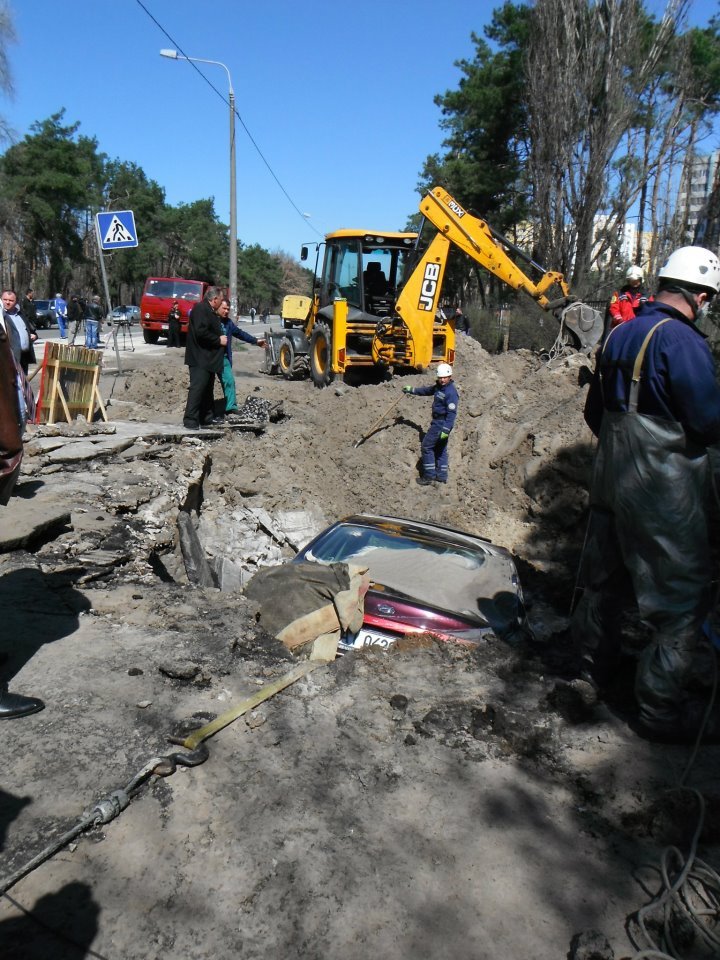 Яма, в которой оказался автомобиль, имеет довольно большой размер – три на четыре метра, а глубина составляет два метра. От электрического снабжения отключен был техникум гостиничного хозяйства Киева.