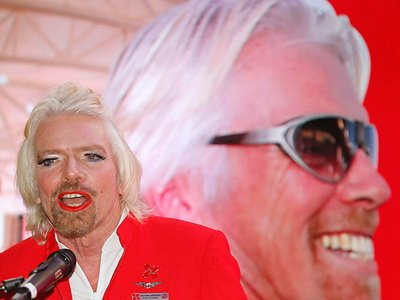 Предварительно Брэнсон публично побрил ноги и нанес на губы красную помаду, что является обязательным для работниц авиарейсов компании Тони. Ну а затем предстал перед объективами фотокамер в алой униформе стюардесс AirAsia.