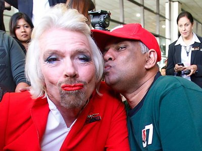 Глава Virgin миллиардер Ричард Брэнсон был вынужден побрить ноги, покраситься и отработать в качестве стюардессы на рейсе компании Air Asia после того, как проиграли пари владельцу Lotus Racing Тони Фернандесу.