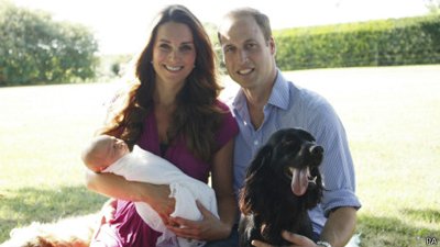 На одной из фотографий принц Уильям и Кейт Миддлтон сидят на лужайке вместе с сыном и черным спаниэлем Лупо. За спиной у новоиспечённых родителей лежит ещё одна собака – ретривер Тилли.