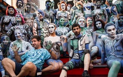 В центре Нью-Йорка прошла акция, в ходе которой художники разрисовали тела 40 обнажённых моделей, сообщает RT. Художник и идеолог акции Энди Голуб сообщил журналистам, что Нью-Йорк – единственный город, где ему разрешили провести его мероприятие под названием Bodypainting Day – день рисования по телу.
