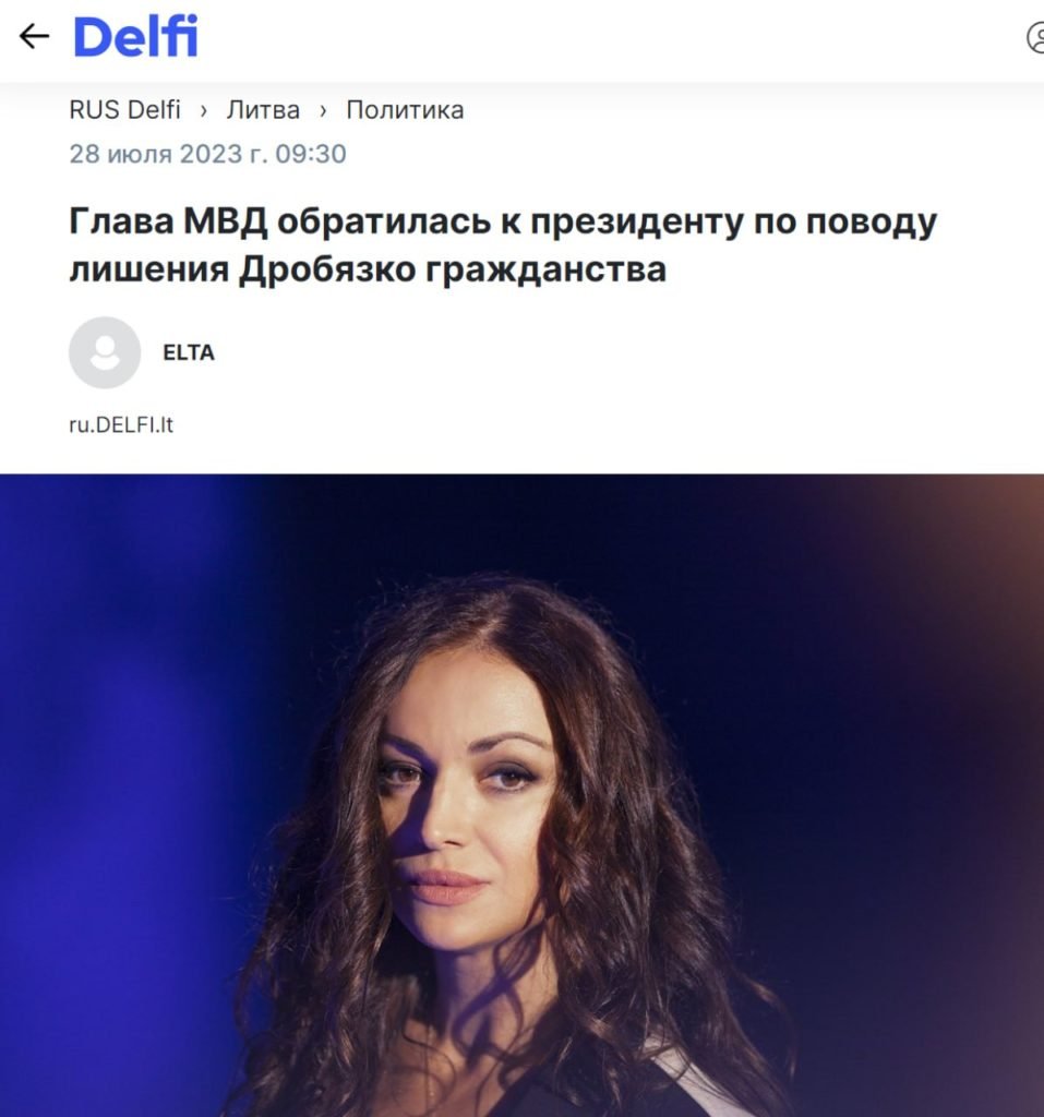 Еще в июне сейм Литвы поддержал инициативу о лишении Дробязко гражданства. При этом в июле этого же года Департамент государственной безопасности Литвы решил, что фигуристка Дробязко не угрожает стране.