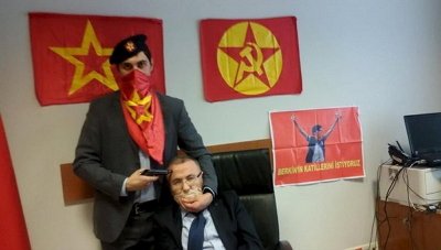Напомним, Беркин Эльван получил ранение в голову от выпущенной полицейскими газовой шашки во время событий вокруг парка Гези. В течение 268 дней он находился в коме в стамбульской клинике. В марте прошлого года он умер на руках у врачей. После похорон Эльвана на улицы вышли десятки тысяч возмущенных людей, во многих городах страны прошли демонстрации с призывом к отставке премьер-министра Реджепа Тайипа Эрдогана. 15-летний подросток до сих пор остается символом протестного движения в стране. Попавший сегодня в заложники прокурор занимался расследованием беспорядков, последовавших после гибели Эльвана.