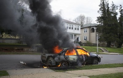 По мере своего передвижения по улицам Балтимора, демонстранты грабили магазины и поджигали автомобили. Также они мешали пожарным командам бороться с пламенем, обрезая им шланги.