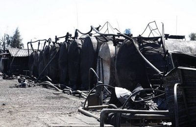 Ранее госслужба Украины по ЧС сообщала, что очагов открытого огня на нефтебазе на вечер пятницы нет и пожар полностью ликвидирован. Однако, судя по фото с нефтебазы, появившимся в Интернете, за несколько суток объект попросту выгорел дотла.