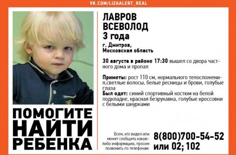 В Подмосковье накануне днём пропал внук главы Дмитровского района Валерия Гаврилова — 3-летний Всеволод Лавров.