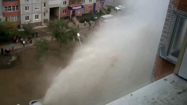 20-метровый фонтан кипятка в Абакане выбил окна в многоэтажке (фото, видео)