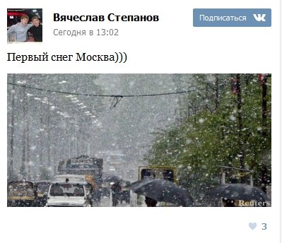 Первый снег в Москве 2015 ФОТО: "ВКонтакте"