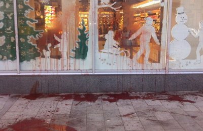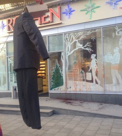 Во Льве прошла акция протиста у магазина «Рошен», на которой активисты при входе в магазин повесили чучело украинского президента Петра Порошенко, сообщает LifeNews. Кроме того прилегающую они же территорию облили свиной кровью.