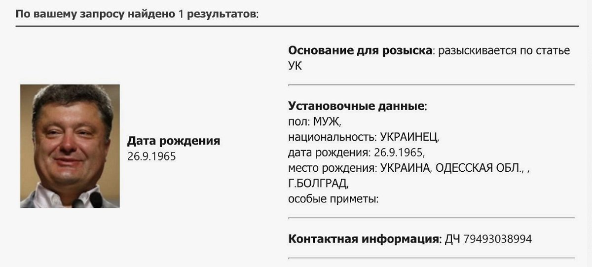 Порошенко же, комментируя объявления в розыск в России, заявил, что для него это поощрение за патриотизм и любовь к Украине.