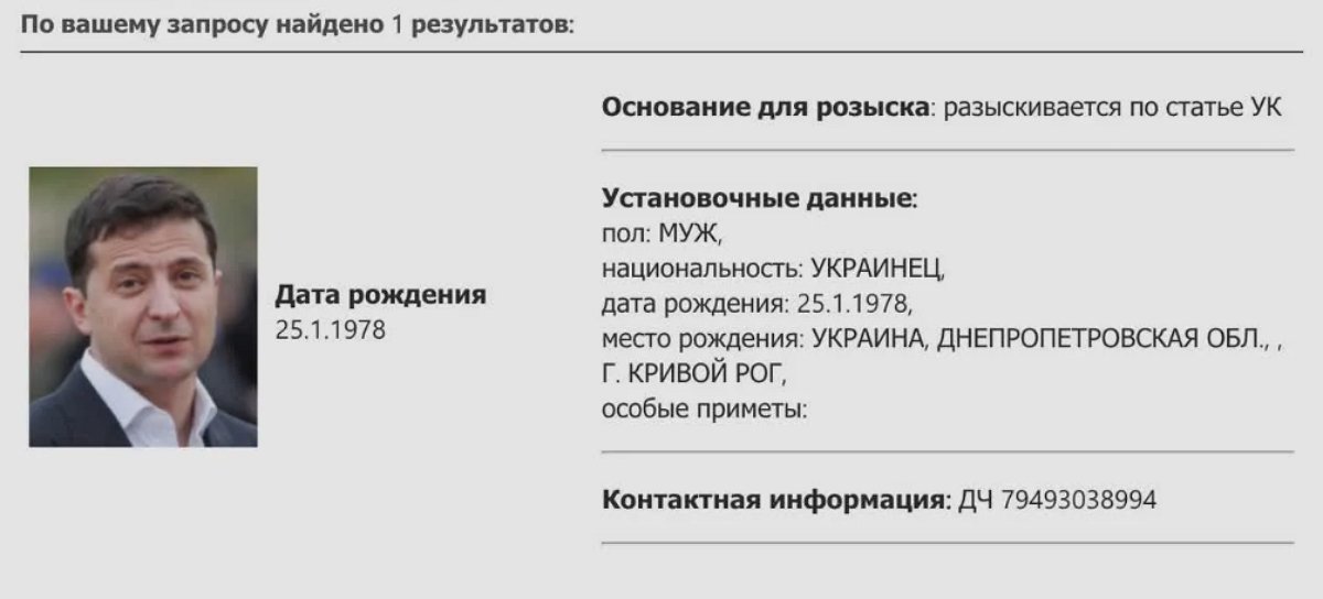Напомним, причиной для розыска стали уголовные дела заведенные в ДНР на Порошенко и Зеленского в части развязывания войны и применения запрещенных средств и методов ведения военных действий.