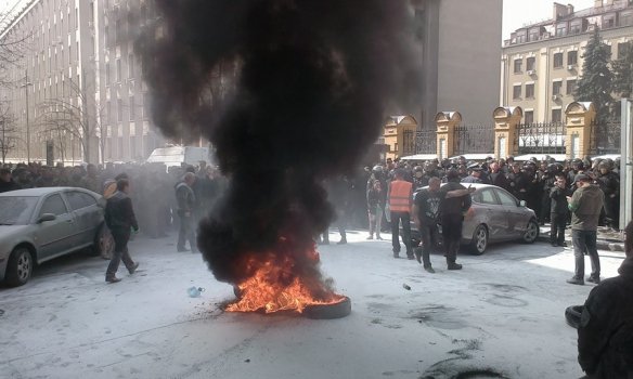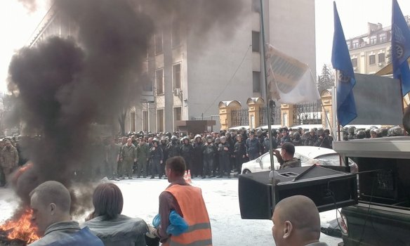 LifeNews сообщает, что силовики уже сформировали кордон перед администрацией. Они хотят преградить активистам "автомайдана" пути к зданию. Сообщается, что лица и одежда участников столкновений, а также автомобили, припаркованные рядом, покрыты белым порошком. Вероятно, сотрудники правительственного учреждения с правоохранителями пытались потушить горящие покрышки с помощью огнетушителей.