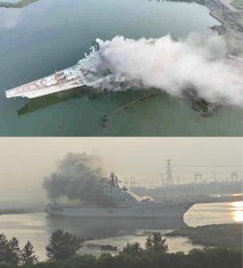 В Китае загорелся проданный РФ авианосец «Минск»: пожар попал на видео (ФОТО, ВИДЕО)