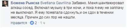 При этом в комментариях к записи Рынска рассказала о смерти своего соседа-алкоголика при невыясненных обстоятельствах.