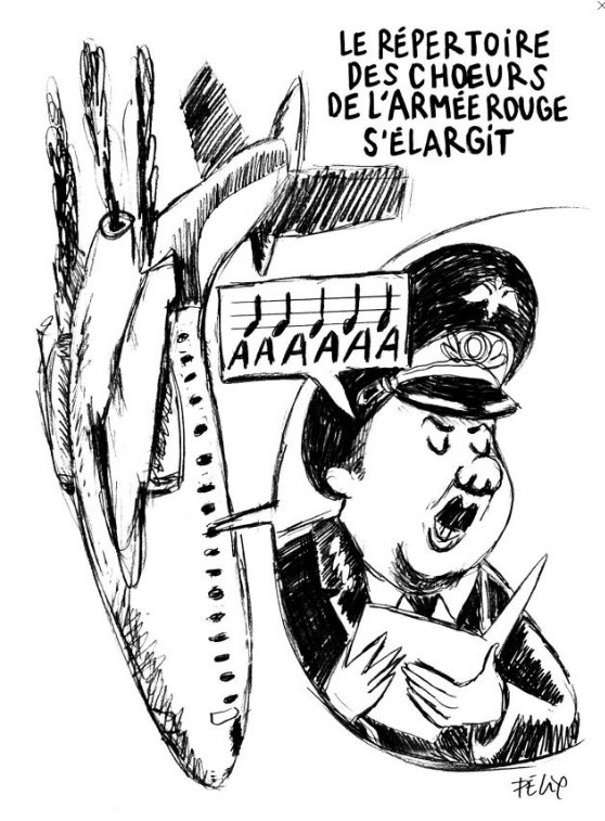 Французский сатирический еженедельник Charlie Hebdo опубликовал карикатуру на крушение самолёта Минобороны России Ту-154 в районе Сочи. На рисунке изображены падающий самолёт и находящийся в нём военный, произносящий звук «а-а-а-а».