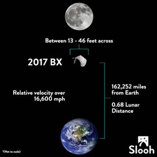 Астероид 2017 BX впервые был замечен 20 января. Тогда он находился на расстоянии 261,120 км от Земли или на расстоянии не более чем двух третей до Луны, пишет "Независимая газета".