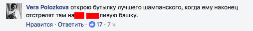 В своих комментариях девушка пообещала открыть бутылку лучшего шампанского в день, когда Прилепину "отстрелят башку".