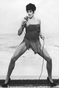 Следующее фото представляло Синди с короткой стрижкой, поющей в микрофон.