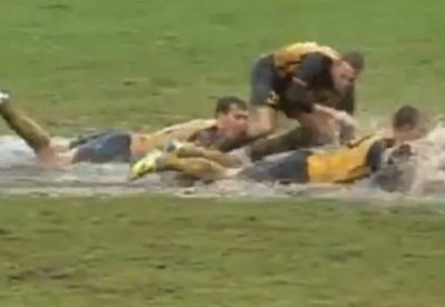 На усеянном лужами газоне футболисты больше заботились о собственном балансе, и им удалось совершить считанное количество точных передач. Матч превратился в фарс почти сразу после стартового свистка.