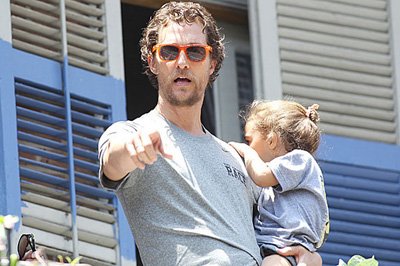 Услышав смех и крики, на балконе появилась и супруга Макконахи Камилла Альвес с детьми Леви и Вита. А вот Брэд показался фанатам в гордом одиночестве, хотя Анджелина Джоли приехала в город вместе с ним.