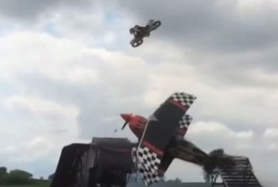 Каскадер на мотоцикле перепрыгнул летящий биплан (ФОТО, ВИДЕО)