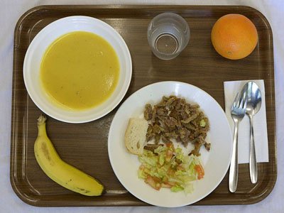На обед им подают сливочный сыр, крекеры, салат "Цезарь", соусы маринара и песто, и красный виноград