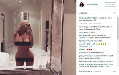 Тогда Ким снова опубликовала на своей странице в Инстаграме свое фото в обнаженном виде – не менее откровенное, чем первое.