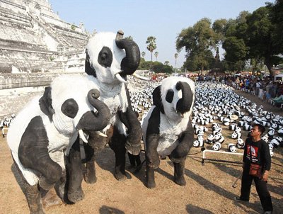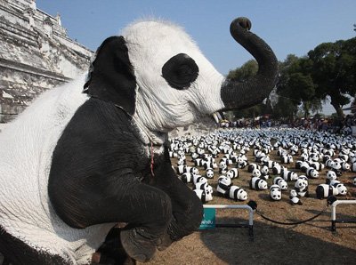 Выставка «1600 панд» проходила на территории слоновьего заповедника и была посвящена проблеме исчезновения панд. На сегодняшний день в дикой среде обитают 1600 особей.