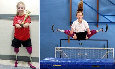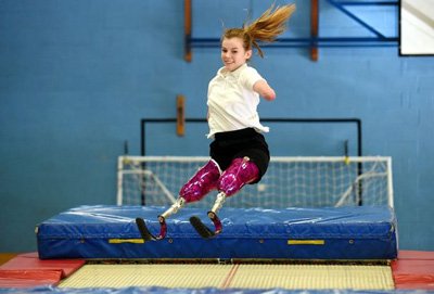 Жительница британского города Дерби, которая в детстве лишилась рук и ног, выиграла Национальные школьные соревнования по прыжкам на батуте среди участников c инвалидностью второй группы.