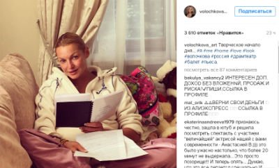 Напомним, что ранее она также рассказывала в соцсети, что в ближайшее время её можно увидеть в спектакле. Балерина пробует свои силы в актёрском мастерстве. И на этом фото, которое вызвало бурю обсуждений в соцсети, Волочкова сидит с листами, на которой распечатан сценарий.