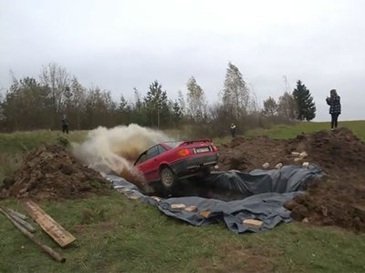 73-летний житель Латвии выкопал яму, наполнил ее "Кока-колой" и нырнул туда на машине.