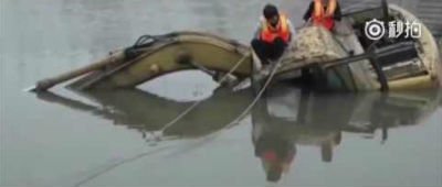 Житель Китая едва не утонул при попытке переплыть реку с помощью установленного на плот экскаватора.