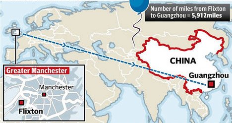 Шарик, улетевший из Манчестера, нашелся в Китае (ФОТО) (ФОТО, ВИДЕО)