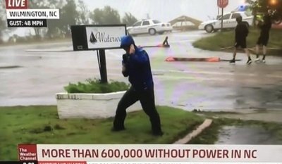 Журналист американского телеканала о погоде Weather Channel стал объектом насмешек после того, как «излишнюю драматичность» его репортажа об урагане «Флоренс» разоблачили случайные прохожие.