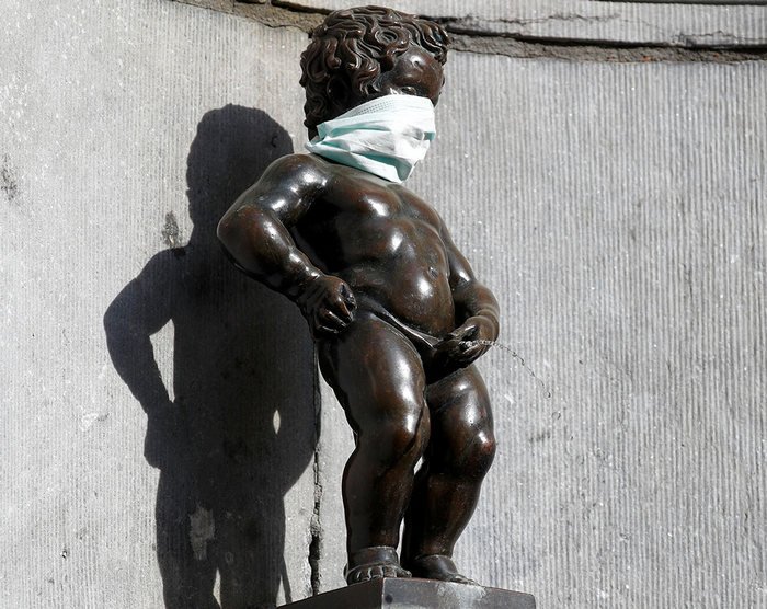Одним из первых собственной медицинской маской обзавелся самый узнаваемый символ бельгийской столицы - писающий мальчик.