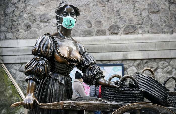 Медицинская маска появилась на статуе Молли Мэлоун в Дублине (Ирландия). Это героиня народной ирландской песни с печальной судьбой.