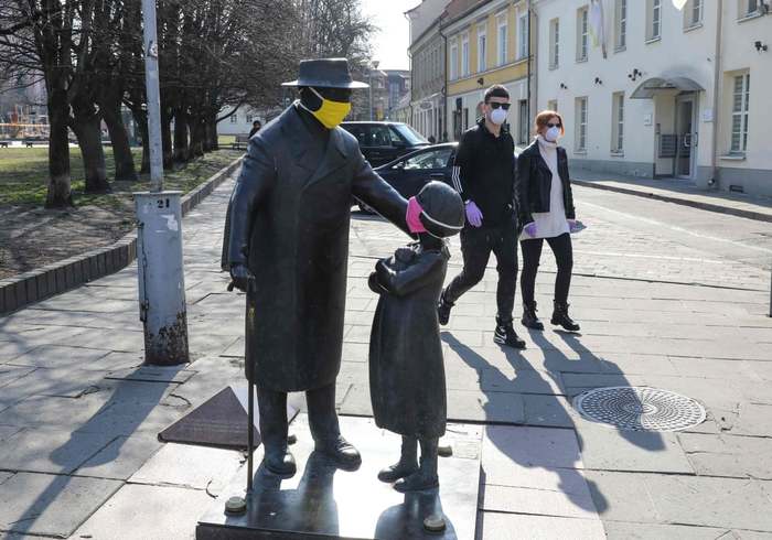 Скульптуры в медицинских масках можно увидеть и в Вильнюсе (Литва).
