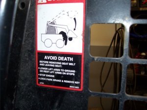 Табличка на тракторе с надписью «Опасность. Избегайте смерти» победила в среду в 11-ом ежегодном конкурсе самых дурацких предупреждающих надписей, спонсируемом американской организацией Michigan Lawsuit Abuse Watch. Конкурс призван показать влияние, которое нелепые судебные иски оказывают на предупредительные надписи.
