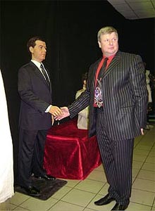 «Этим мы хотели показать, что власть у нас идет из Петербурга», – говорит Ирина Тихонова, представитель музея. Создатели фигуры Медведева уверяют, что начали лепить его задолго до президентских выборов.