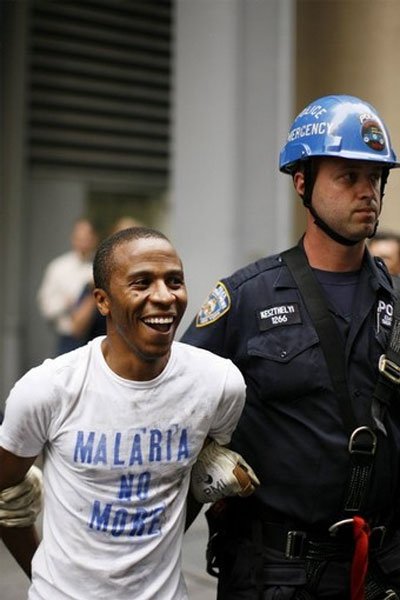 Вначале полиция Нью-Йорка сняла с небоскреба скандально известного Алена Робера по кличке «человек-паук». Полиция города подтвердила его задержание в связи с несколькими обвинениями. На крыше высотки, расположенной в самом людном месте мегаполиса, Робер развернул транспарант, на котором было написано: «Изменение климата убивает больше людей, чем 11 сентября, каждую неделю».