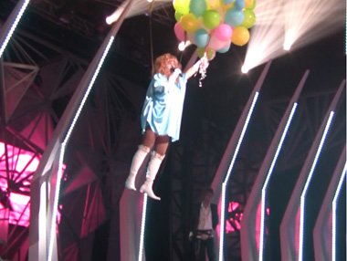 Алла Борисовна исполнив очередной хит, взяла в руки связку воздушных шариков и, вдруг, прямо на глазах у изумленной публики, взлетела под потолок… Такого развития событий не ожидал никто.